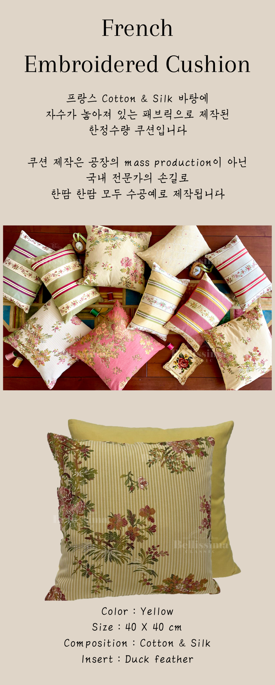 프랑스 자수 쿠션 - Yellow