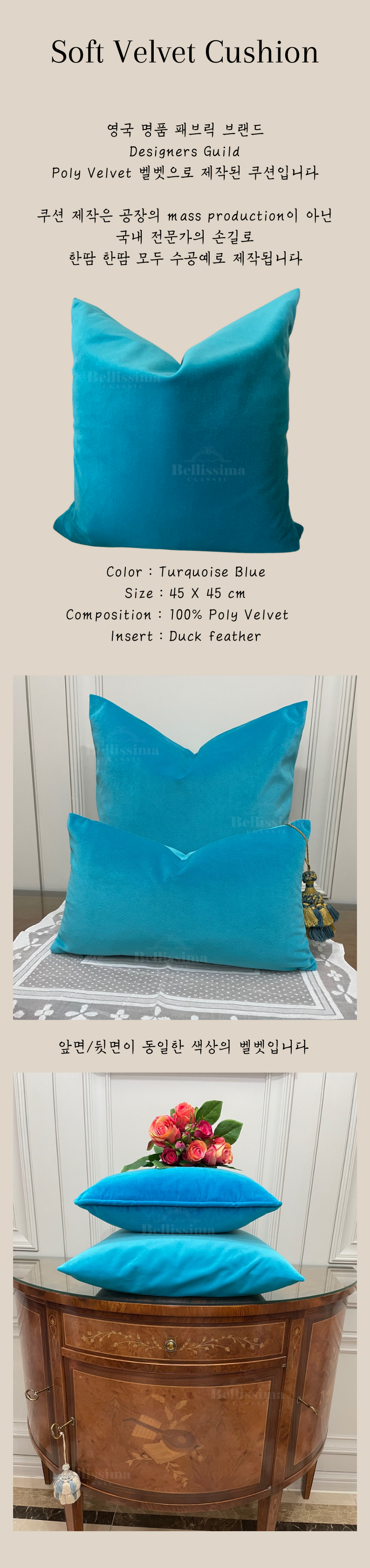 Soft Velvet 벨벳 쿠션 - Turquoise Blue